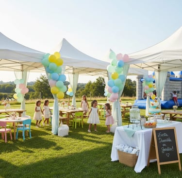 It’s easy to focus on inflatables and forget the basics. Tables, chairs, and tents are just as important to the comfort of your guests.